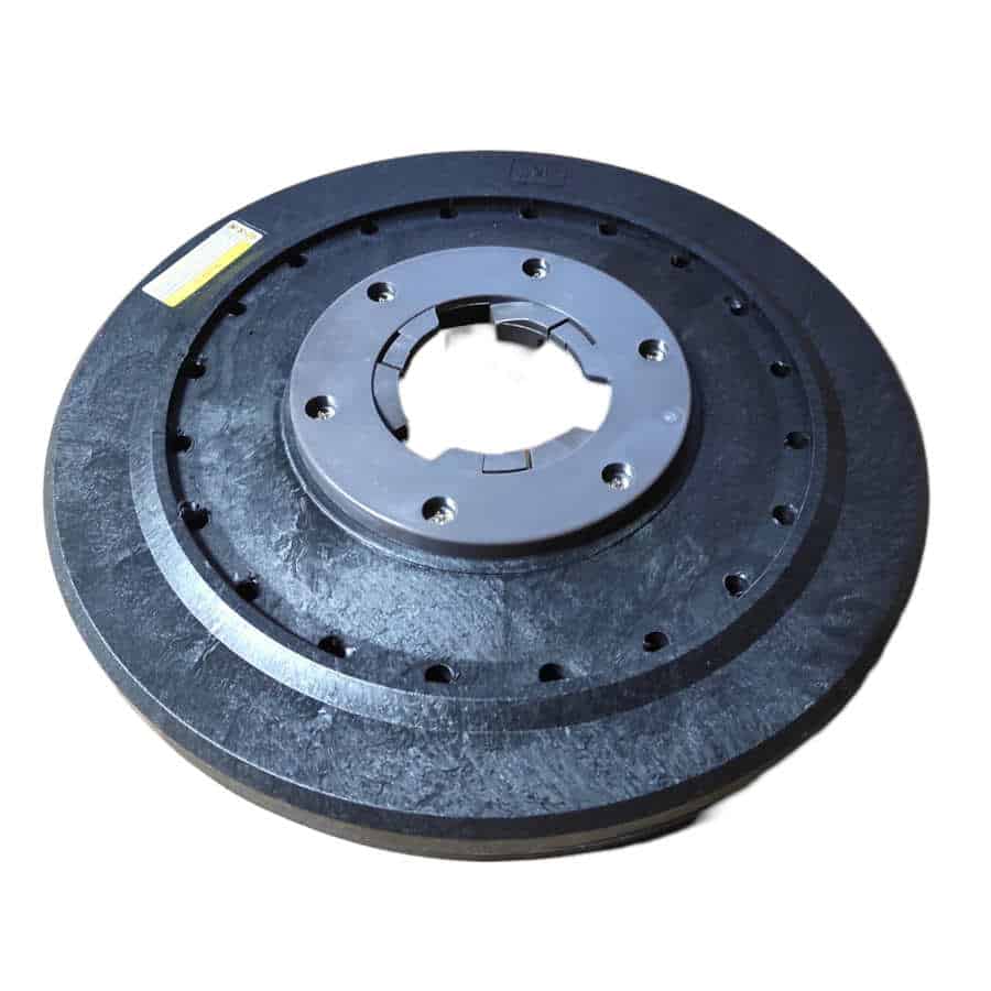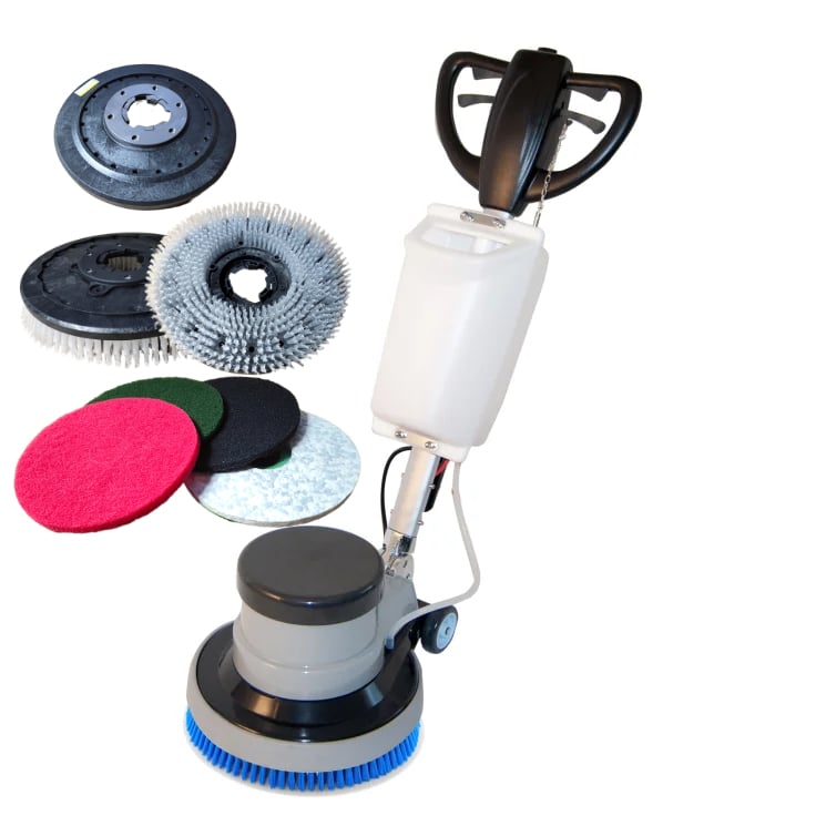 Nach der Reinigung mit SteinDino Baso wird der bruchraue Solnhofener nochmals mit der Einscheibenmaschine und Reinigungsbürste nachgewaschen. Dabei entfernst Du letzte Verschmutzungen und Reinigungsmittelreste.